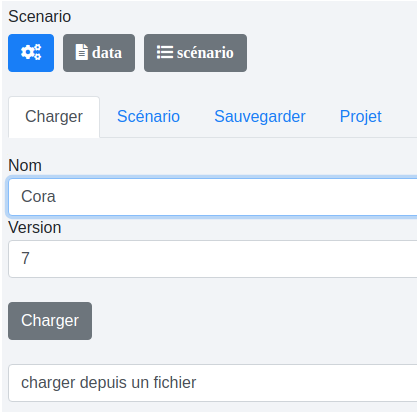 Une fois sur la page d’accueil, vous avez la possibilité dans cet onglet de charger un scénario pré-existant en choisissant son nom et sa version s’il est enregistré en base ou en le chargeant depuis votre ordinateur.