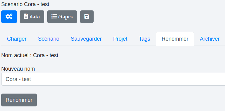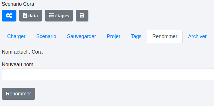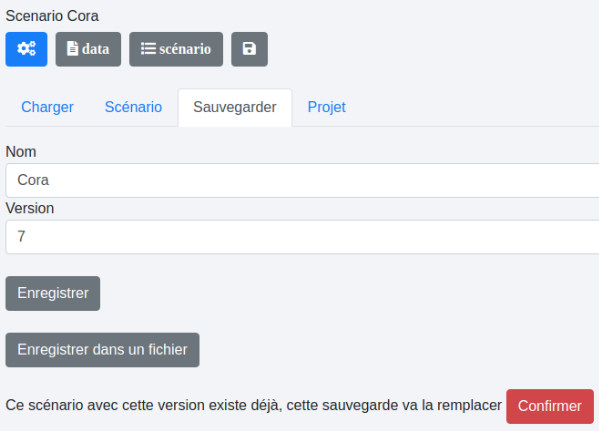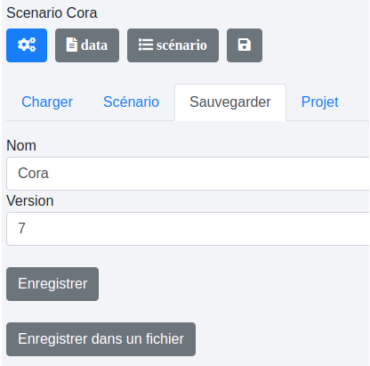 Il est possible d’enregistrer le scénario à tout moment via le bouton “disquette”. Cet enregistrement écrase la version en cours.