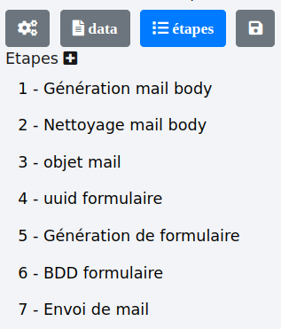 Dans le détail, les étapes ici présentes sont de plusieurs types. Nombre d’entre elles ont été renommées par souci de clarté par le créateur du scénario.