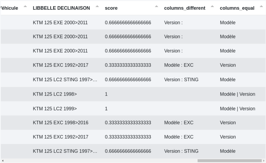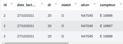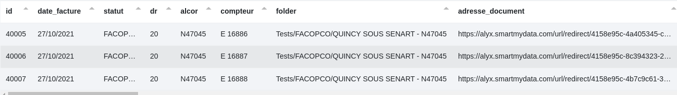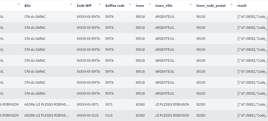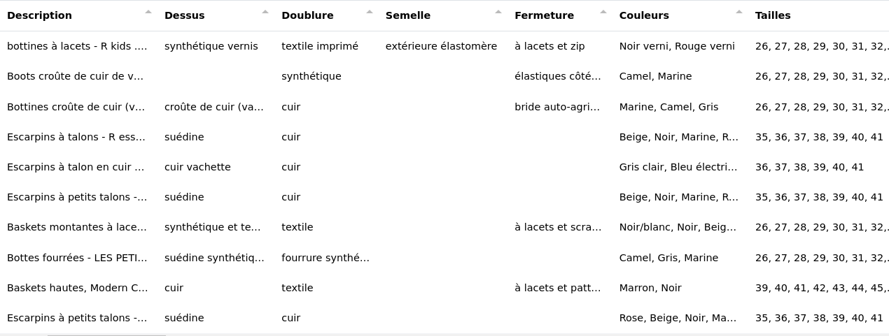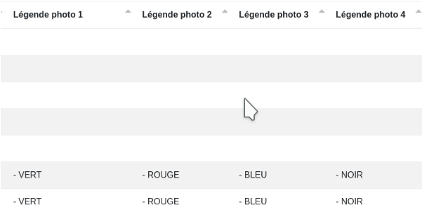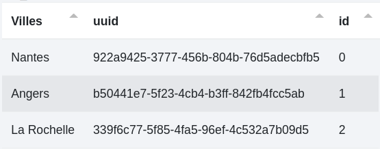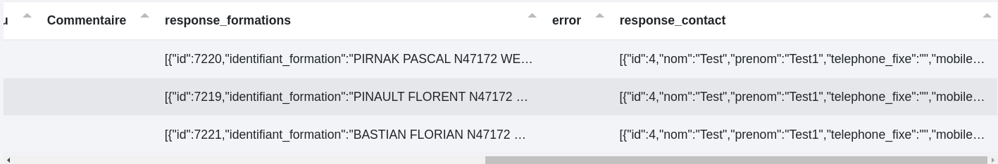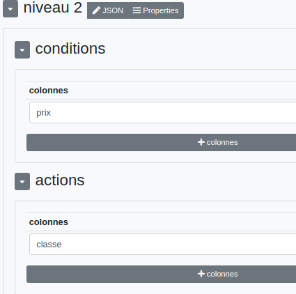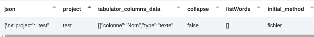 Les clés du fichier JSON donnent les colonnes et les valeurs, leurs contenus.