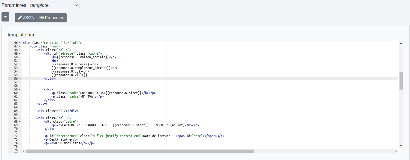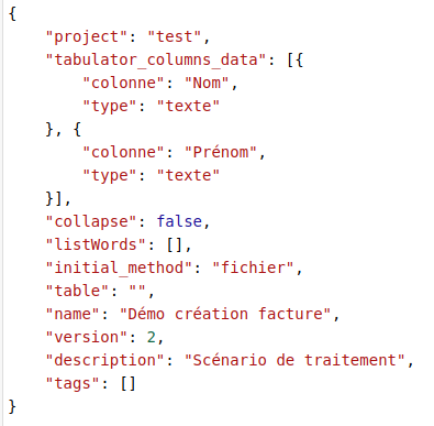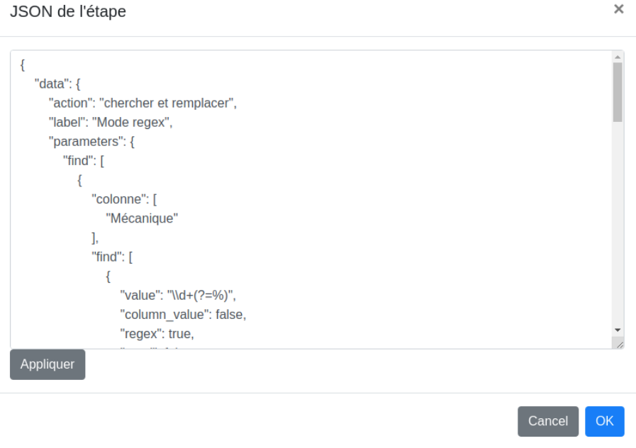 fait apparaître le fichier json de l’étape qu’il est possible d’éditer ou de copier/coller dans une nouvelle étape.