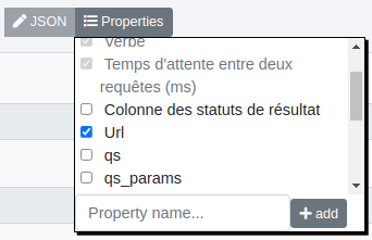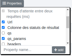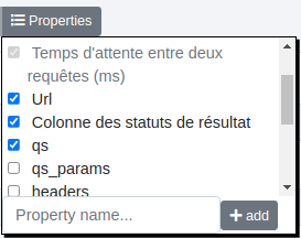 - Soit ils ont leurs propres colonnes dans le csv d’entrée, auquel cas les cases "qs", "header", "body", "form" ou "formdata" doivent être cochées dans le menu "Properties";