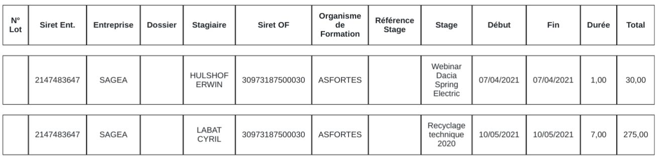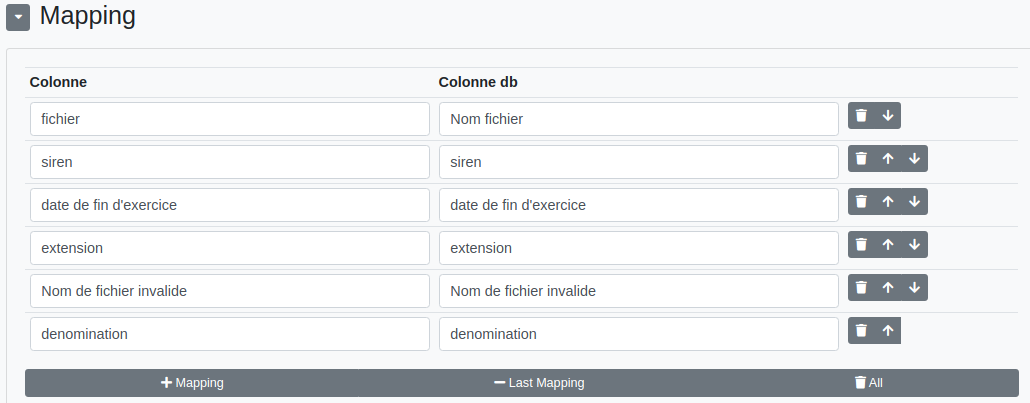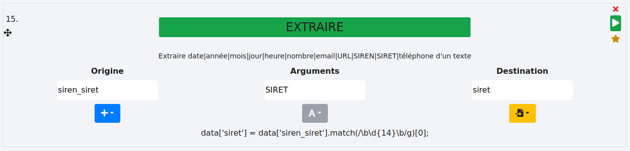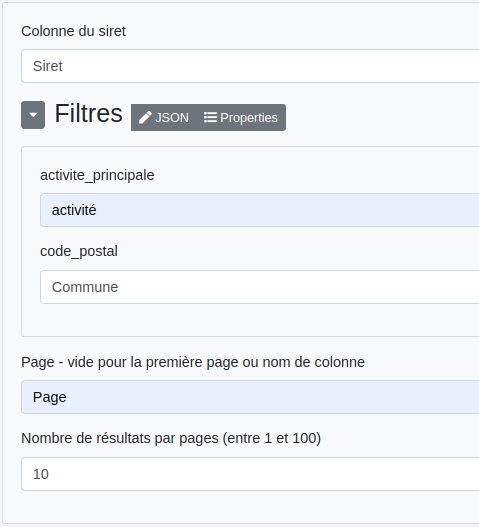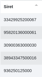 1 - Comme pour le Siren, la première utilisation consiste à déclarer la colonne contenant les numéros Siret à rechercher.