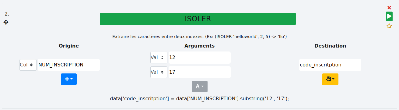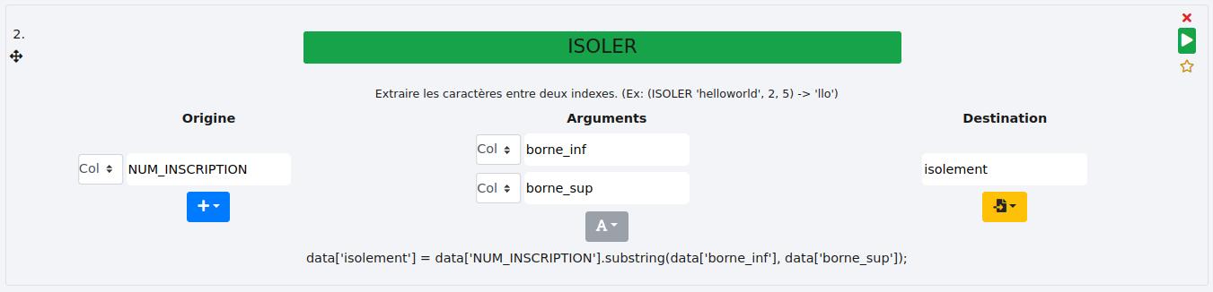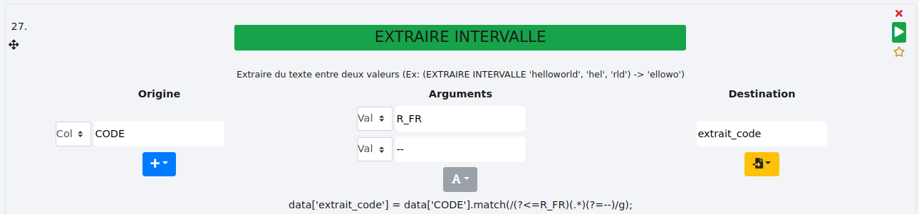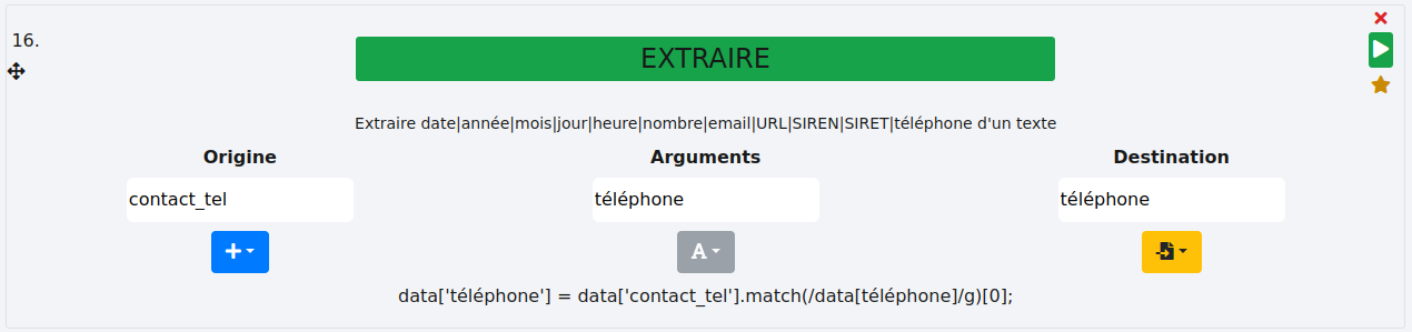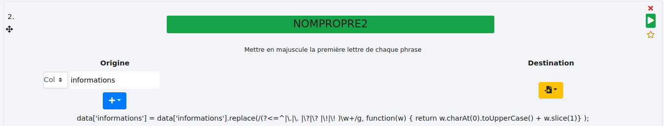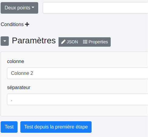 Le bouton "test" permet de tester rapidement le résultat de l’étape courante.