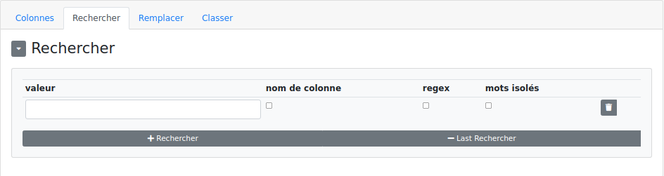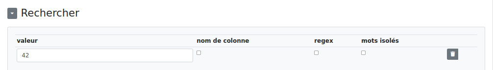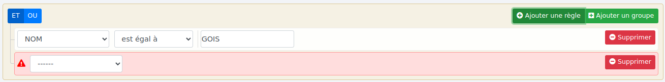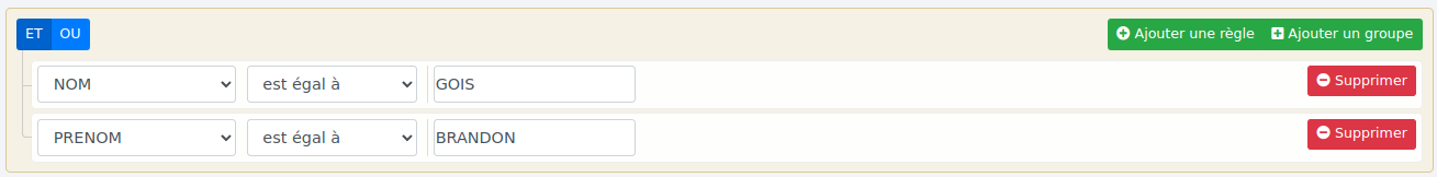 On peut alors ajouter des filtres portant le nom du ou des champs voulus. Les valeurs se trouvant dans une colonne spécifique comme ici :