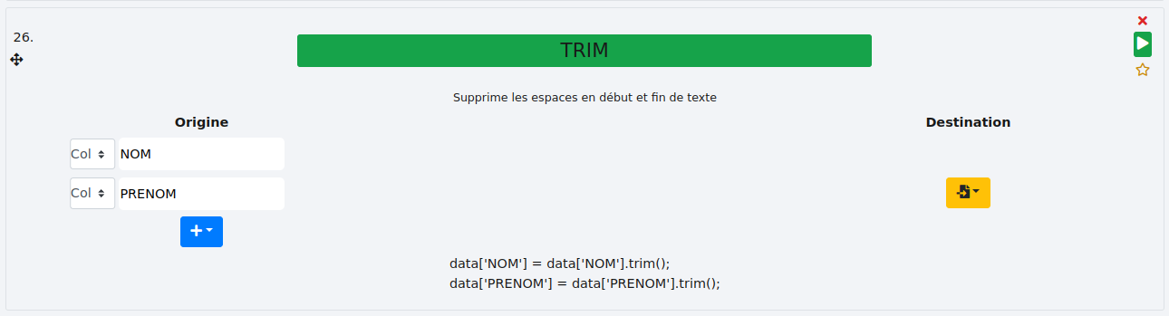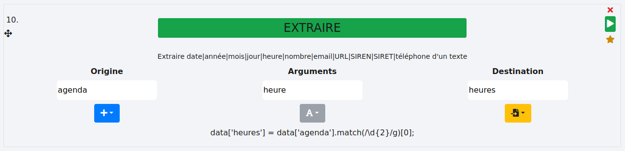 ajoute une nouvelle étape en fin de scénario par défaut. Il est ensuite possible de la glisser/déposer à l’endroit voulu.