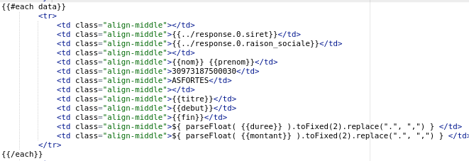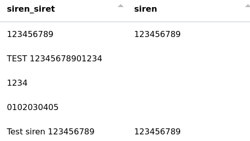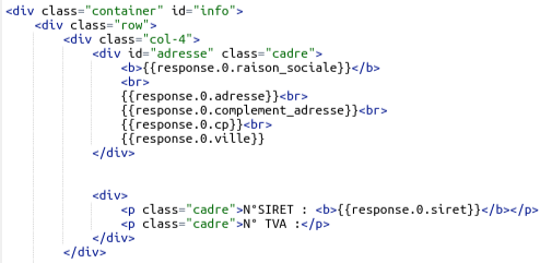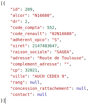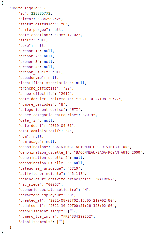 Attention! Seules les clés possédant une valeur sont accessibles. "etablissement_siege" et "etablissements" ne peuvent donner des résultats car contenant de multiples valeurs.