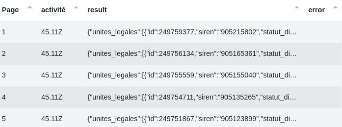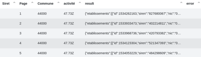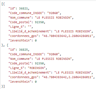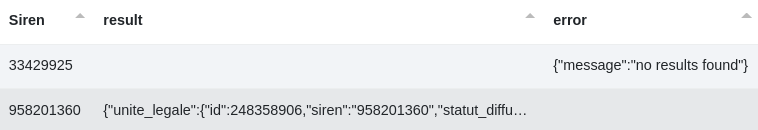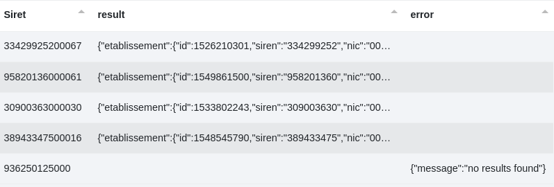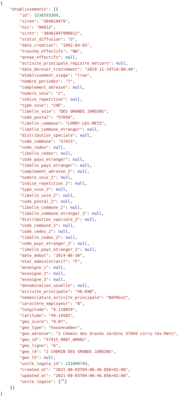 Comme pour la recherche Siren, le service renvoie une réponse au format json.