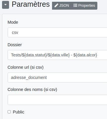 Dans le cas où le csv ne contient pas cette colonne, on doit ajouter l’adresse de l’api en cliquant sur "Properties" puis en cochant "url".