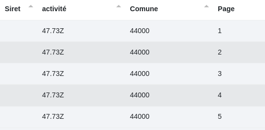 J’obtiens alors 75 pharmacies réparties sur 8 pages.