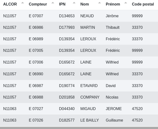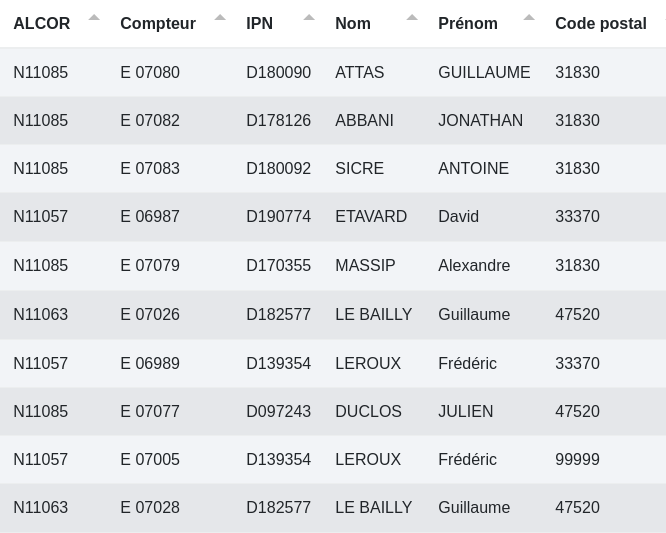 Puis j’ajoute la colonne "code postal" dans le filtre correspondant.