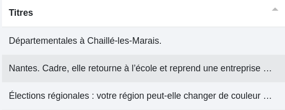 1 - On déclare les éléments à envoyer dans le champ colonne (ici "Titres"). Chaque case cochée donnera naissance à une nouvelle colonne (parfois en anglais).