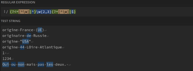 Toutes les expressions de 2 ou 3 caractères : (?<=[^\w]|^)\w{2,3}(?=[^\w]|$)
