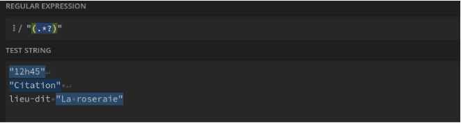 Les guillemets et tout ce qui est entre eux. Ex : "12h45" : "(.*?)"