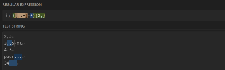 Les points, virgules et tirets répétés deux fois ou plus : ([,.-] *){2,}