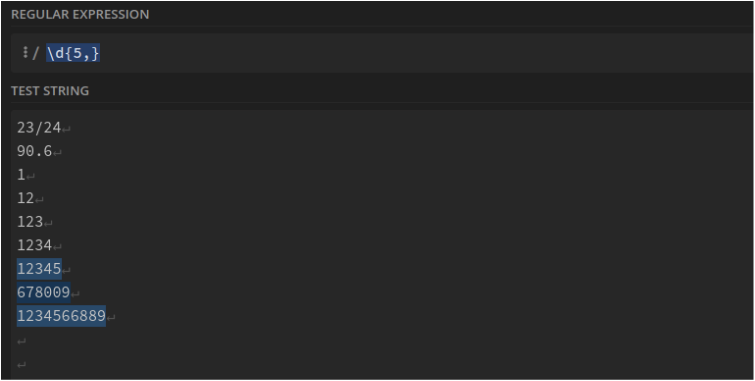 Nombre entier de 5 chiffres minimum : \d{5,}
