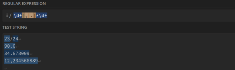 Nombre, décimaux compris, écrits avec une virgule ou un point. Sans limitation au-delà de la virgule : \d+[,|.]*\d+