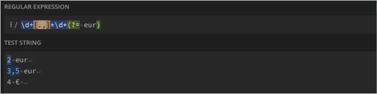 Le prix en euros mais sans la monnaie. Ex : 132,45 : \d+[.,]*\d*(?= eur)