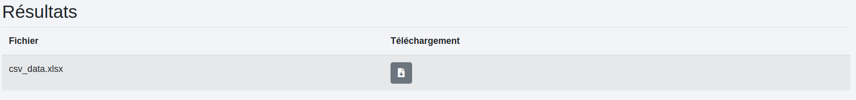 L’icône de lien tout à droite permet de récupérer le fichier de sortie avec les options pour le téléchargement ou une simple exploration.