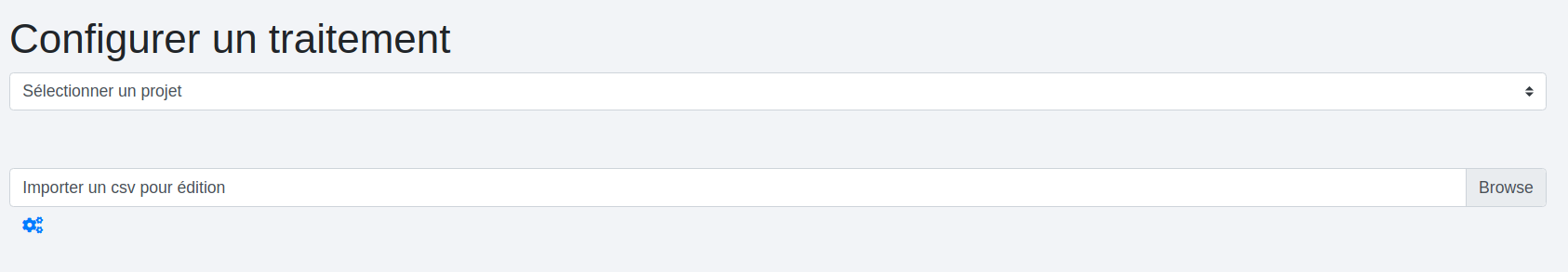 Il s’agit ici d’exécuter un projet préalablement construit via l’éditeur de scénario. Pour ce faire, il suffit de sélectionner un projet dans la liste déroulante et de charger le fichier à traiter (si le projet en attend un).